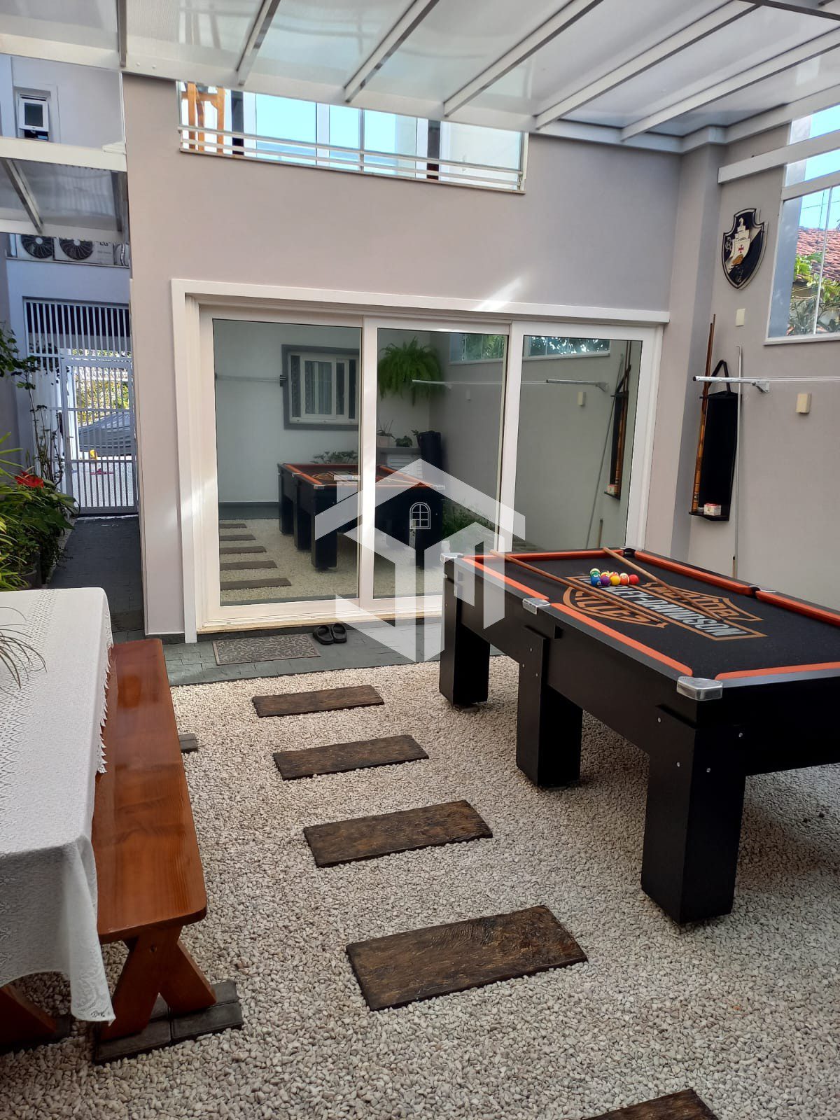 Churrasqueira com área de festas e mesa sinuca.